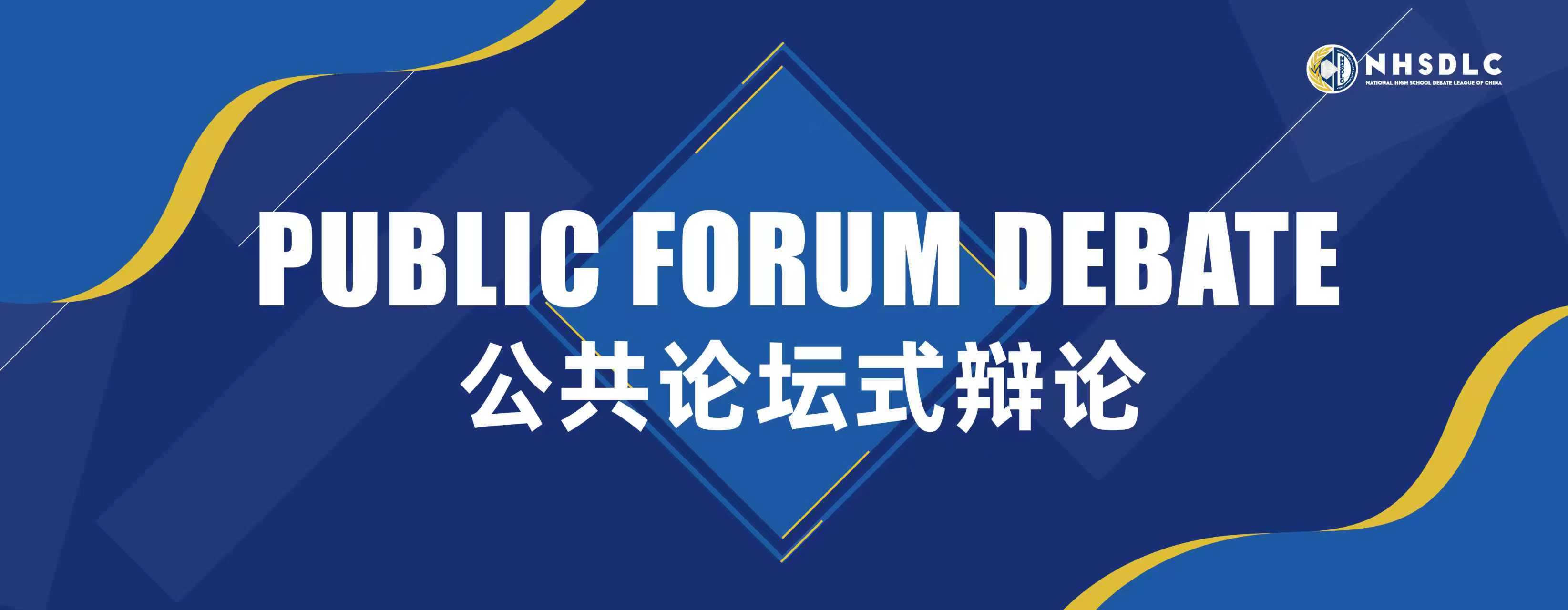 公共论坛式辩论是目前国内绝大多数美式辩论赛事采用的辩论种类,英文全称为Public Forum Debate,通常也被简称为“PF Debate”。比赛辩题通常由组委会在开赛前发布,比赛以2v2形式进行,在开赛前对阵双方将随机决定持方和发言顺序。在一场约60min(核心流程43min)的比赛中,参赛双方需要以时事为中心,依靠逻辑和证据来构建论点,说服裁判。