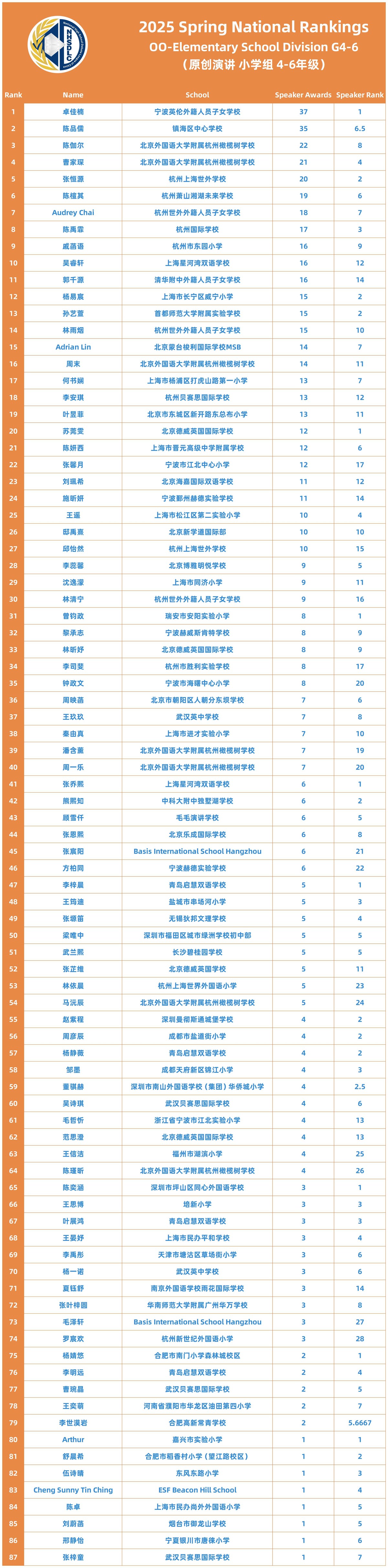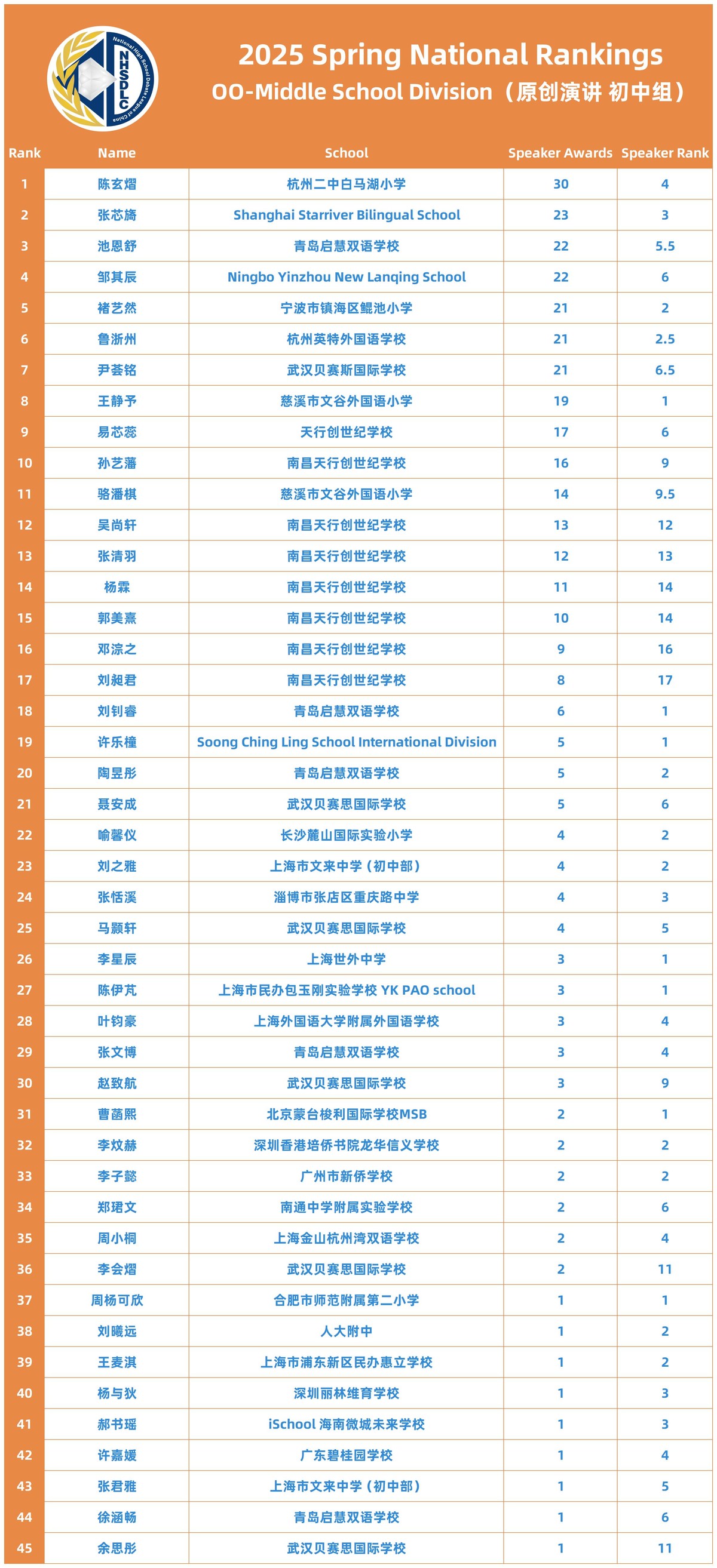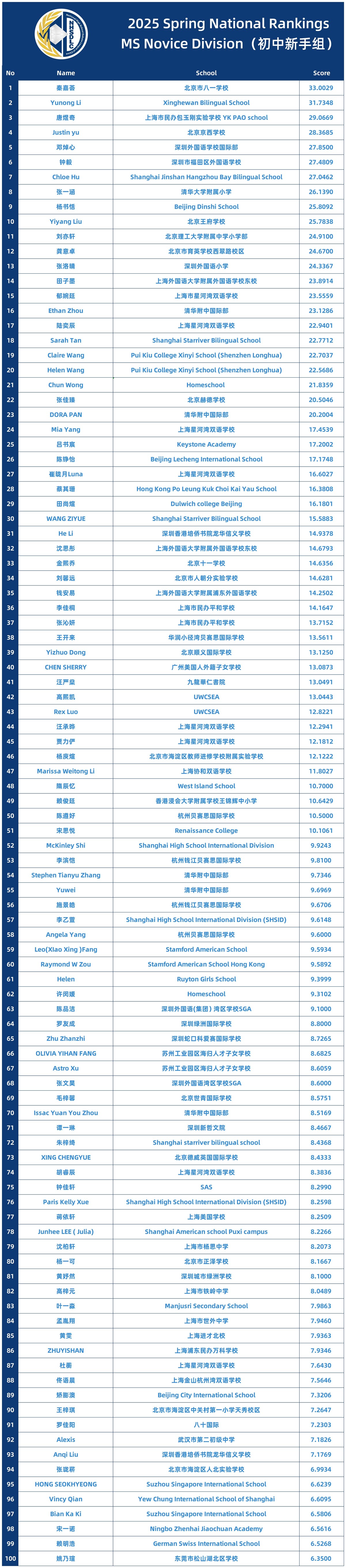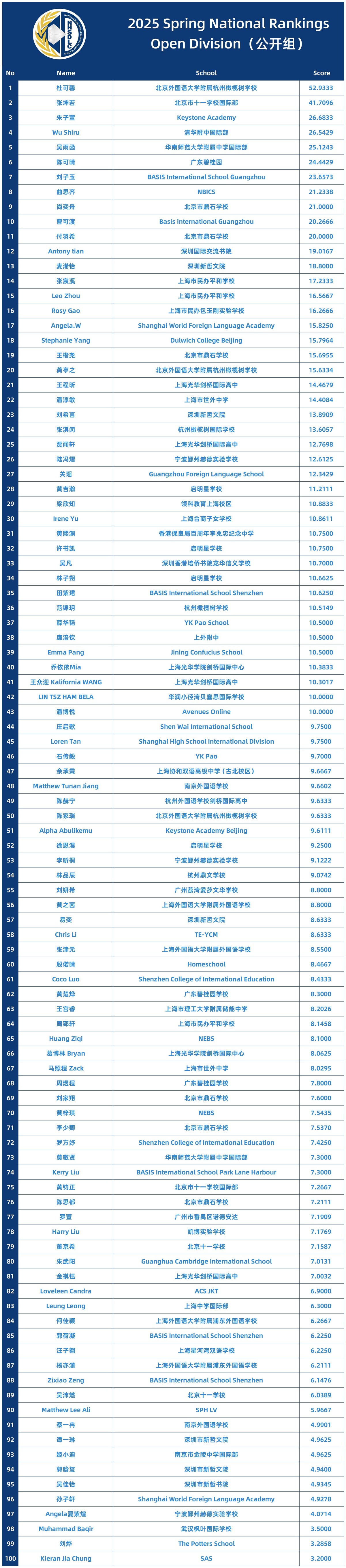 2025 SPRING NATIONAL RANKINGS