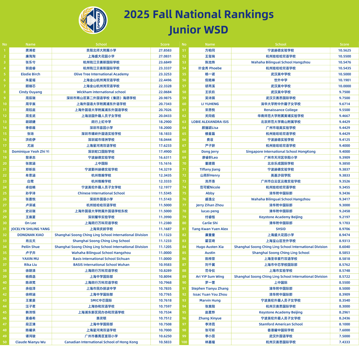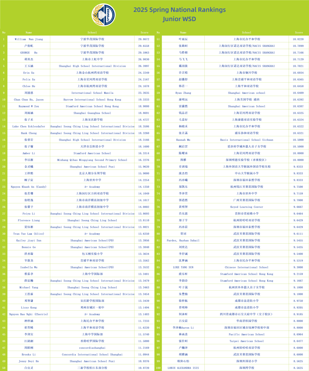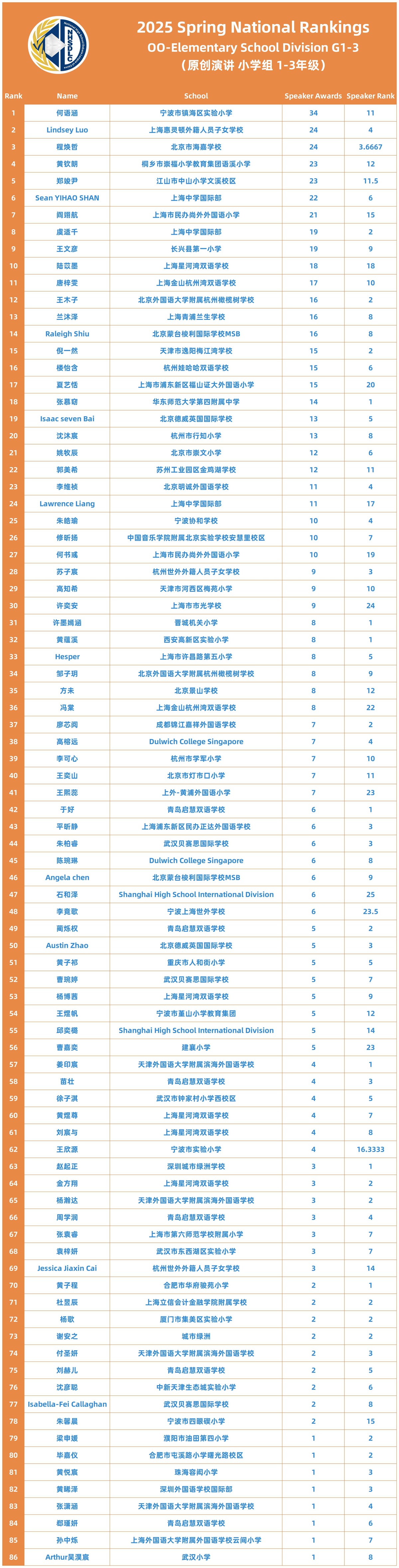 2025 SPRING NATIONAL RANKINGS