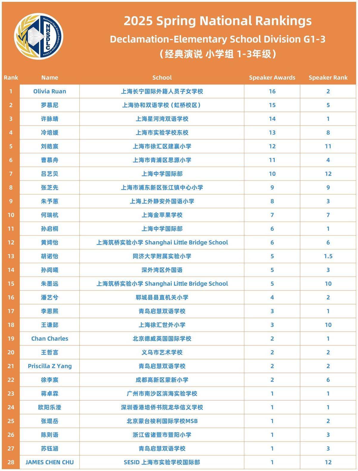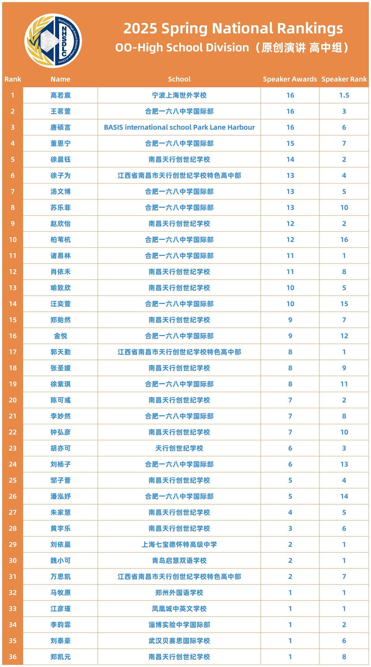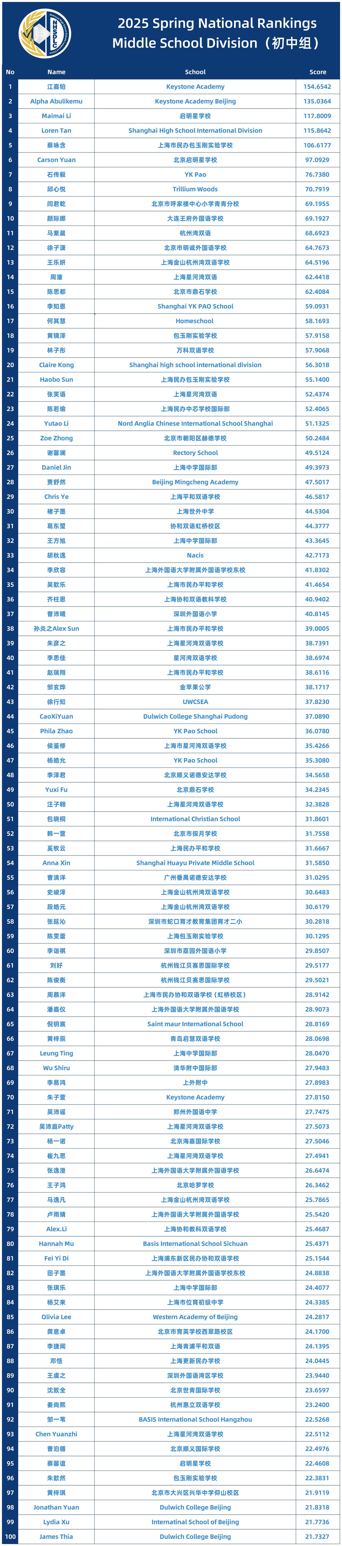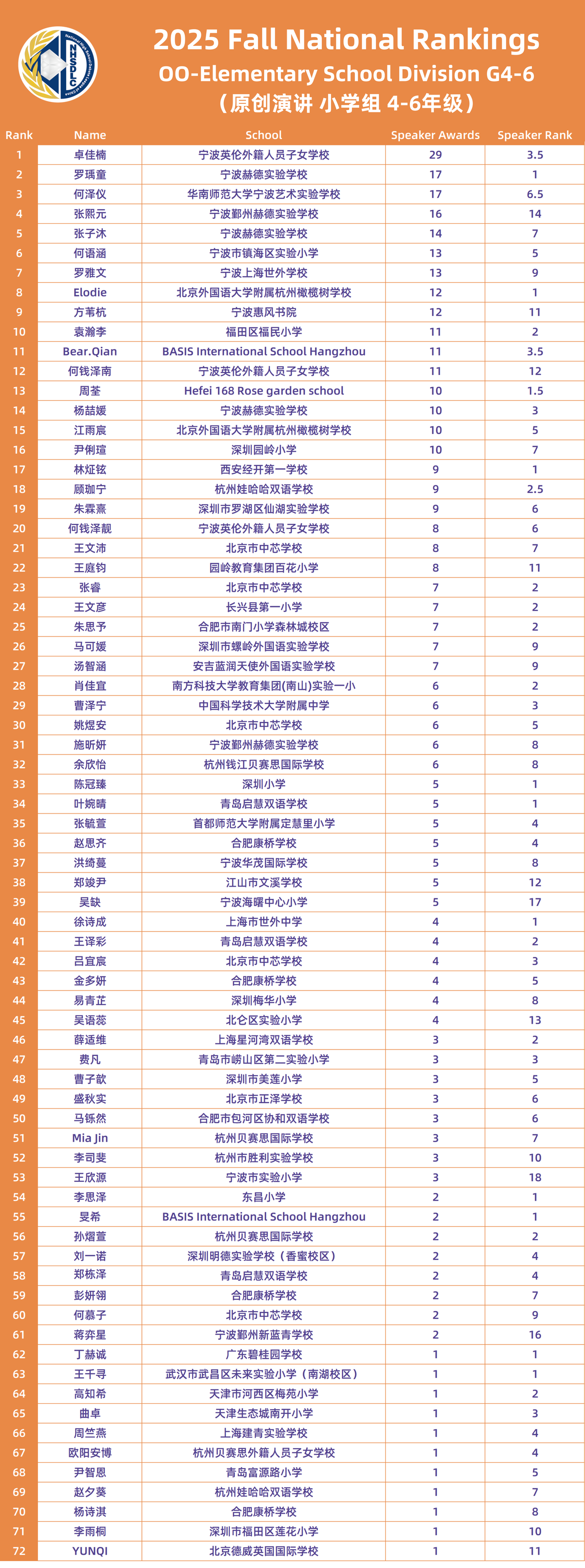 2025 SPRING NATIONAL RANKINGS