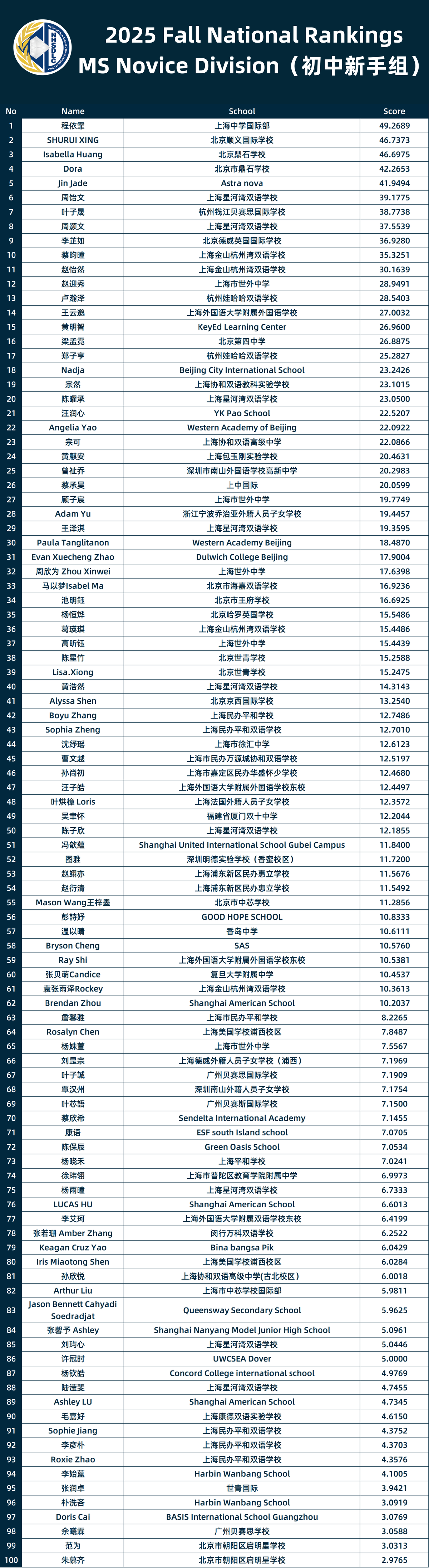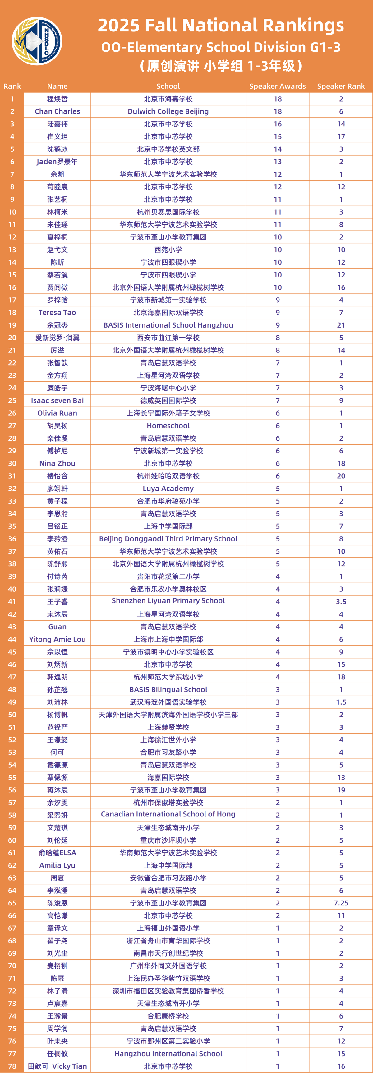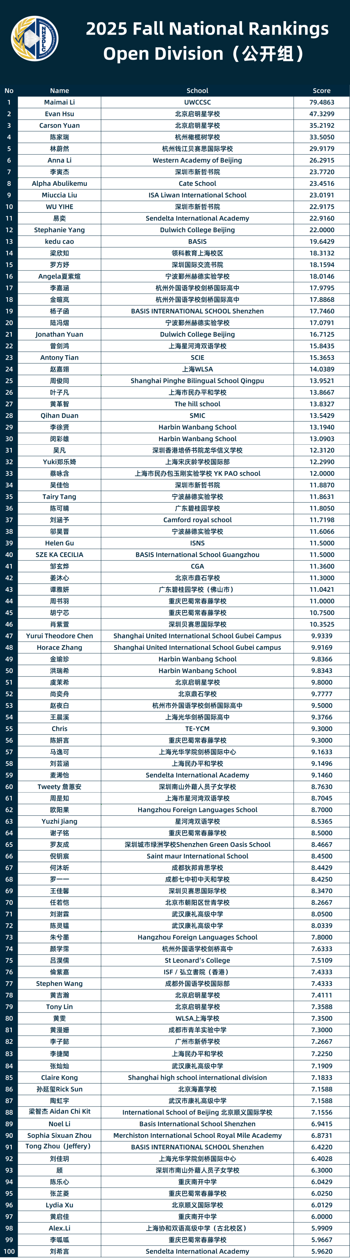 2025 FALL NATIONAL RANKINGS