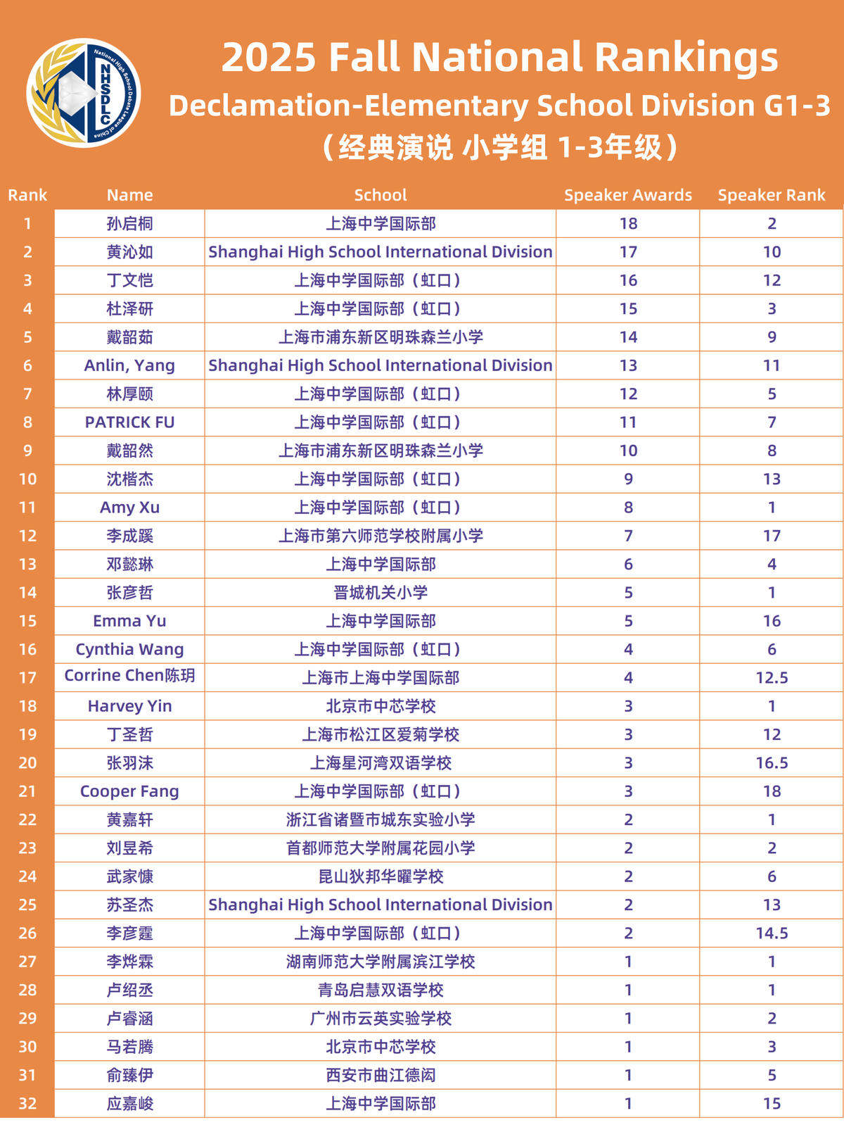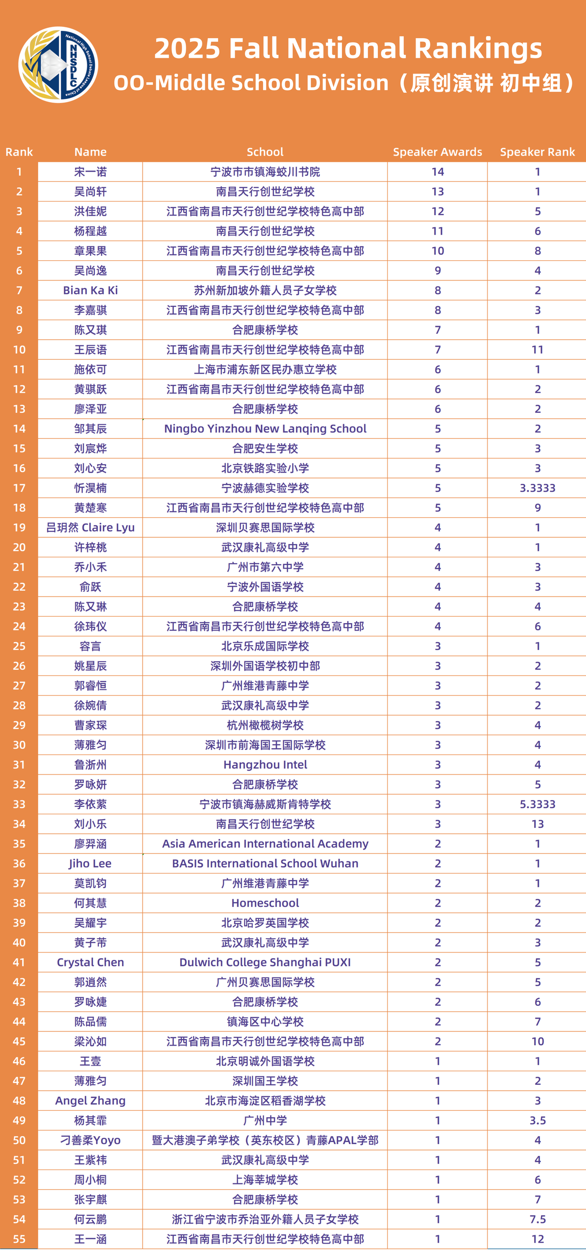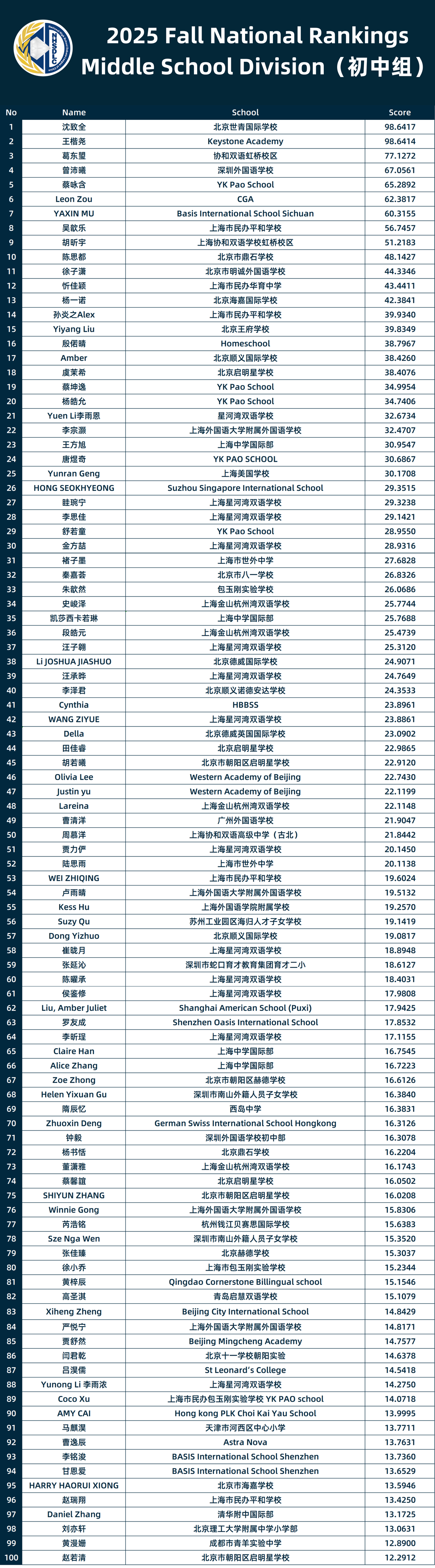 2025 FALL NATIONAL RANKINGS